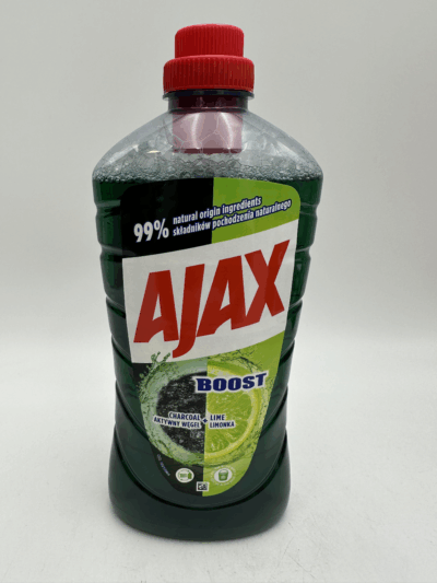 - Az Ajax Charcoal + Lime Általános Tisztítószer tökéletes választás, ha erőteljes tisztításra és hosszan tartó frissességre van szükség. Innovatív aktív szén formulája mélyen tisztítja a felületeket, miközben hatékonyan eltávolítja a makacs szennyeződéseket és zsíros foltokat.