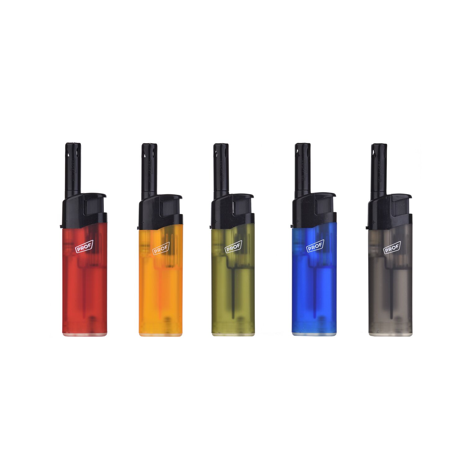 Hossza 11 cm, fix lángú, újratölthető , gumírozott test, átlátszó neon színek.