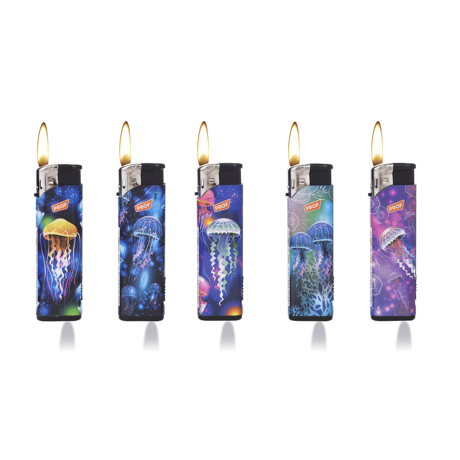 LED öngyújtó, mindegyik fehér színnel világít, állítható láng és újratölthető, medúza mintával .
